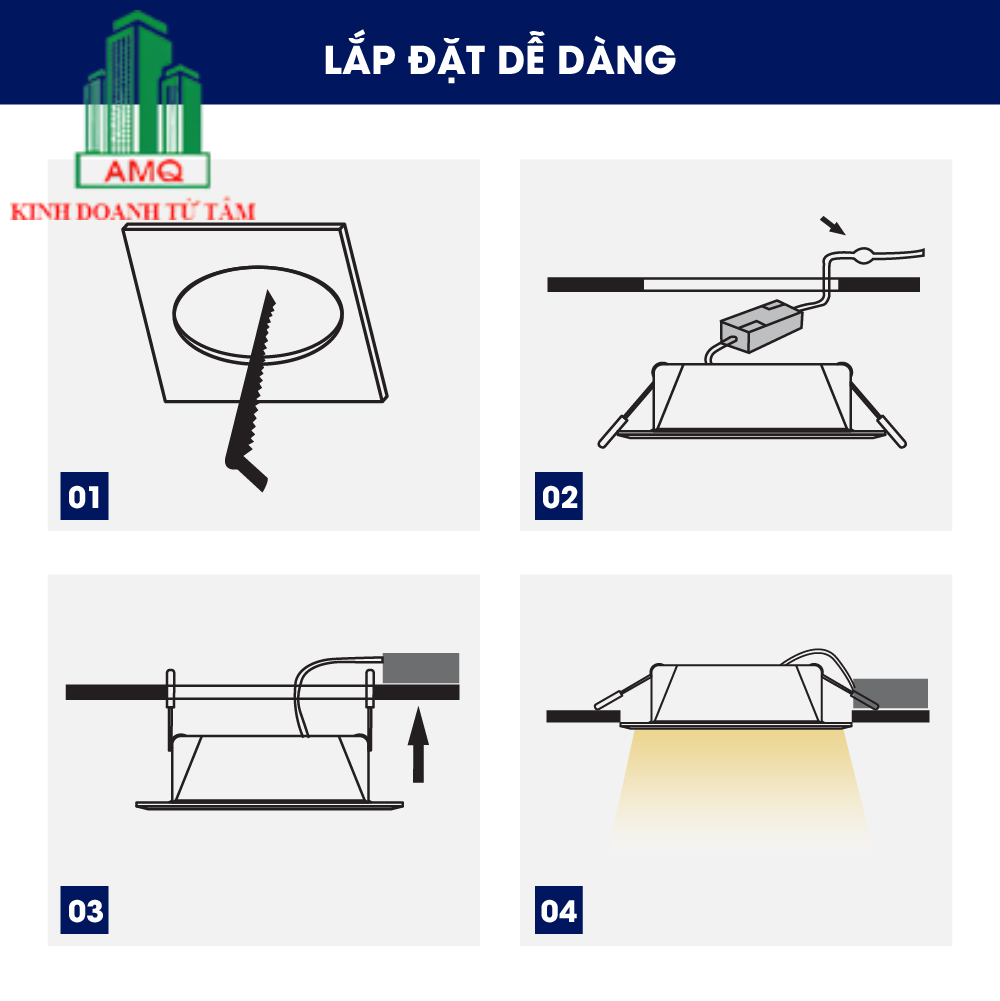LED Downlight âm trần là loại đèn được sử dụng phổ biến, khi lắp không chiếm diện tích không gian, mang lại tính thẩm mỹ cao.