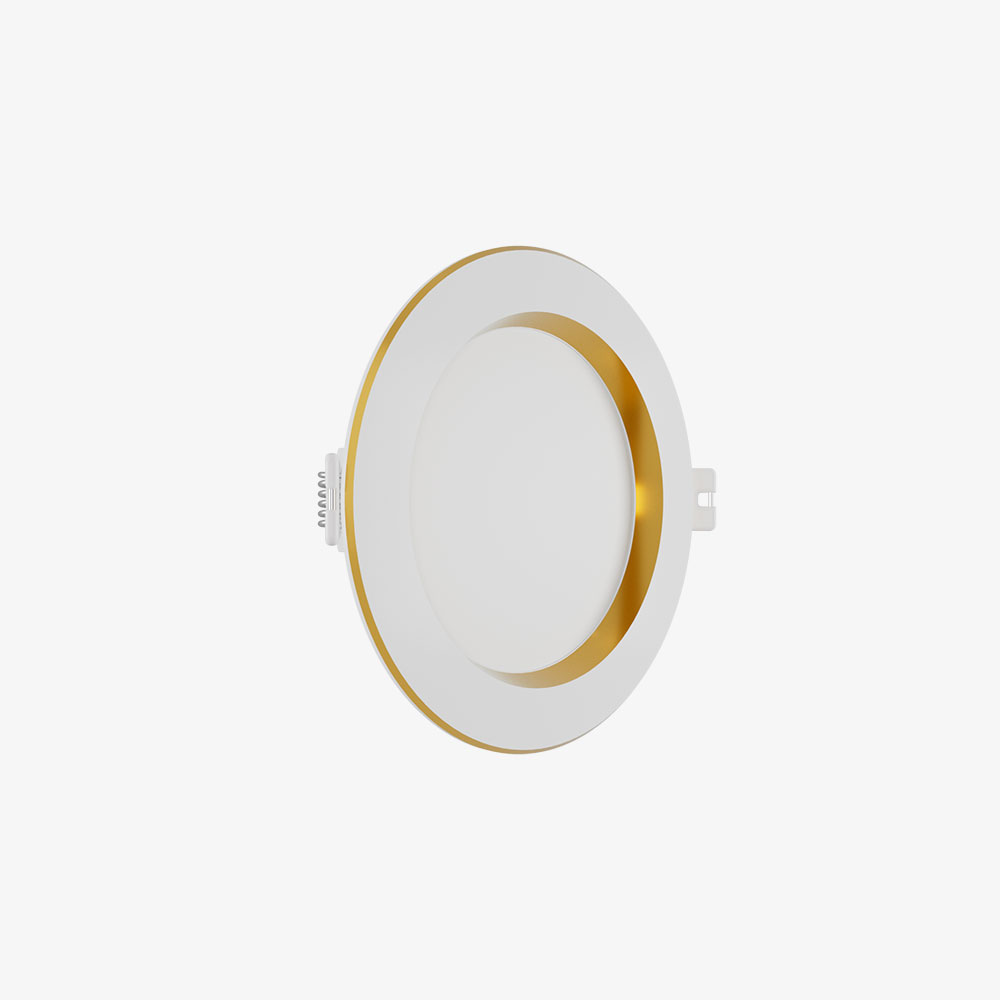 Mặt cover nằm sâu 8mm so với vành, hạn chế chói lóa khi thắp sáng. Vành mạ viền vàng/bạc trang trí, phù hợp đa dạng nhu cầu sử dụng.