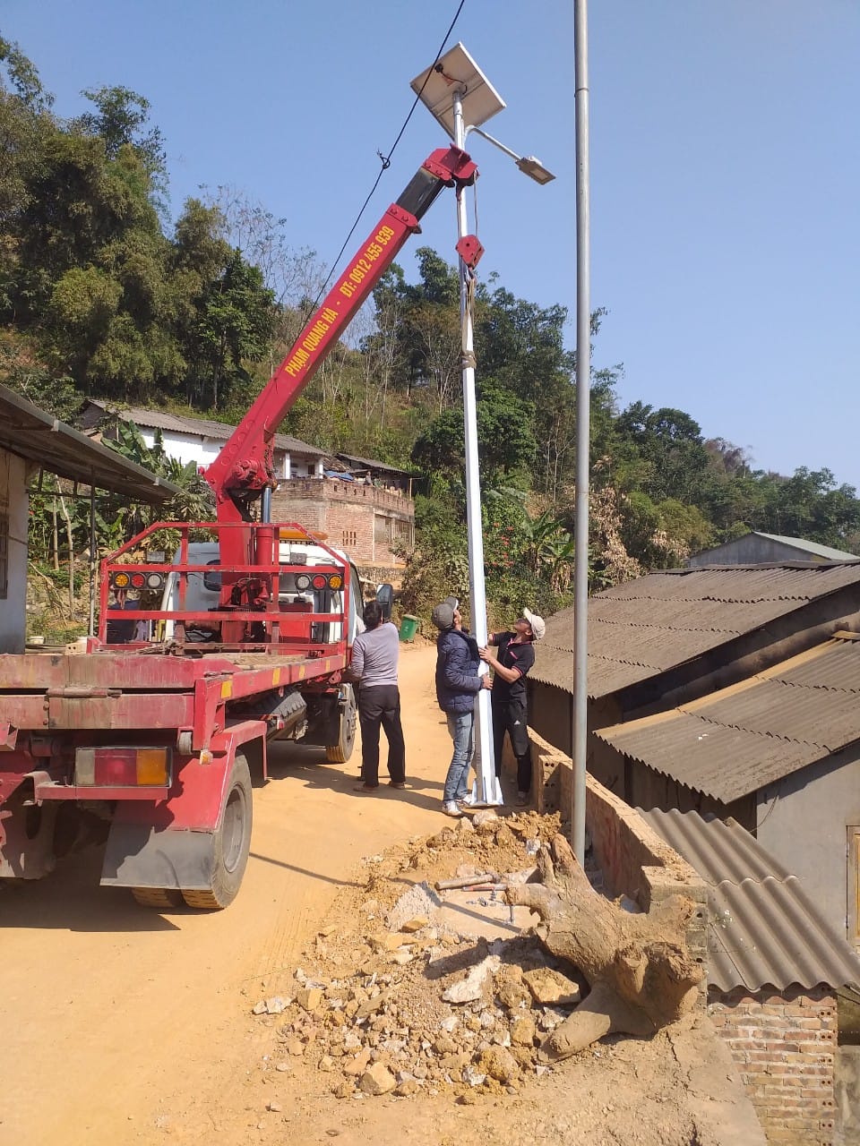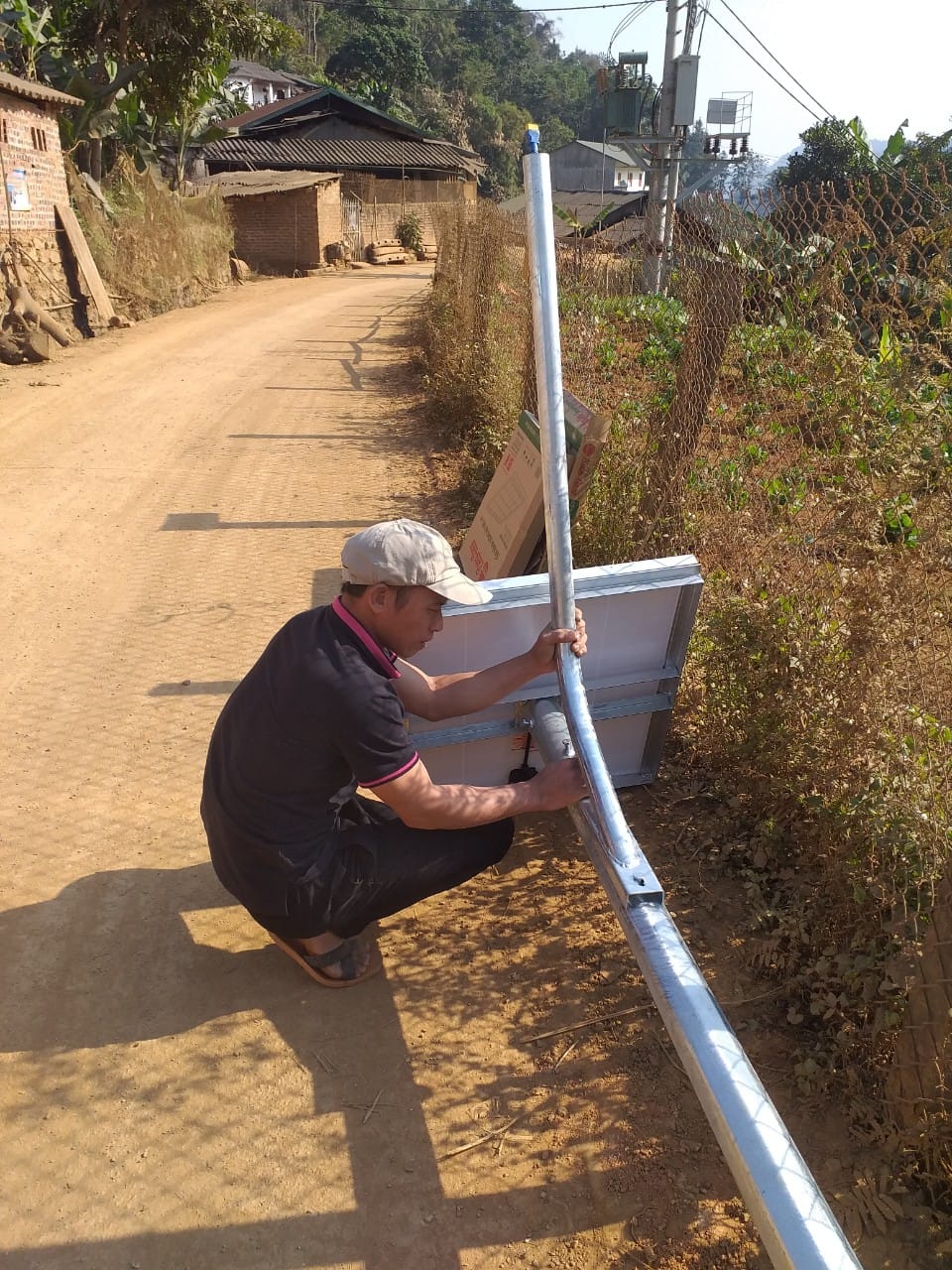 Hoàn thành lắp đặt hệ thống đèn năng lượng mặt trời chiếu sáng đường cho bà con tại huyện Nguyên Bình.